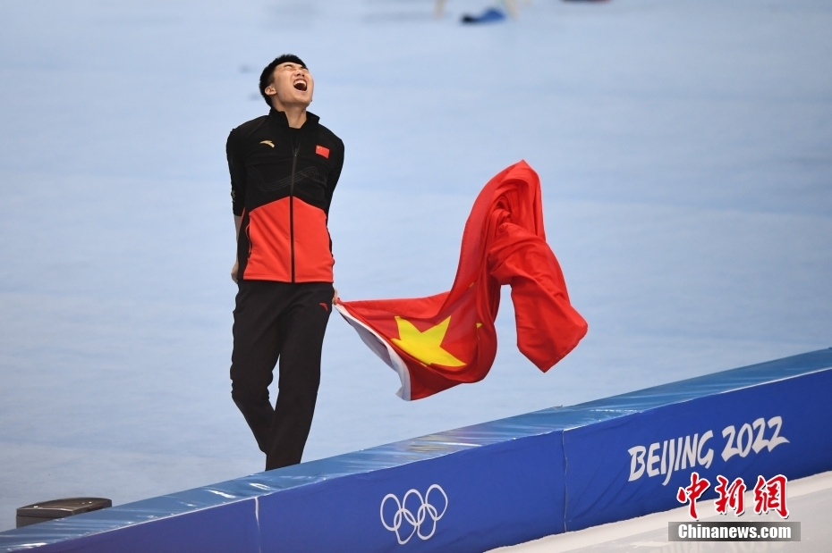 2月12日,北京2022年冬奧會速度滑冰男子500米決賽在國家速滑館“冰絲帶”舉行。中國選手高亭宇以34.32秒的成績打破奧運會紀錄,奪得冠軍。這是中國首次在冬奧會速度滑冰男子項目獲得金牌。圖為高亭宇慶祝勝利。 中新社記者 毛建軍 攝