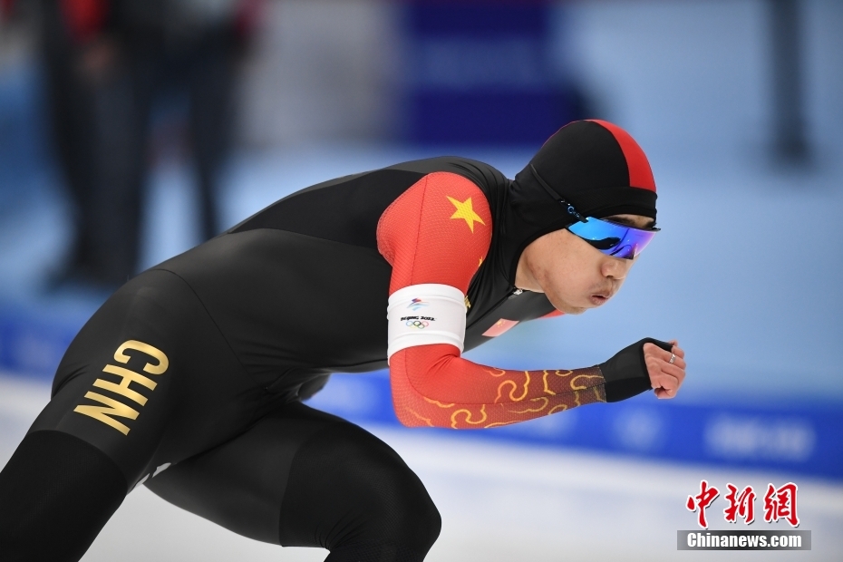 2月12日,北京冬奧會速度滑冰男子500米比賽中,中國選手高亭宇滑出34秒32,獲得金牌并打破奧運紀錄。圖為高亭宇在比賽中。 中新社記者 李駿 攝