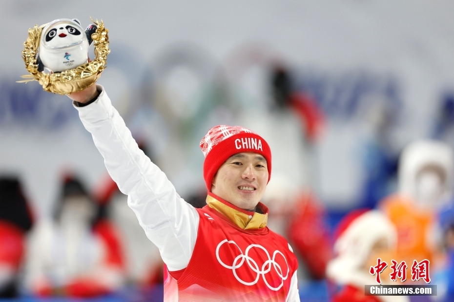 2月16日,冠軍中國選手齊廣璞在頒發(fā)紀念品儀式上。當日,北京2022年冬奧會自由式滑雪男子空中技巧決賽在張家口賽區(qū)舉行,中國選手齊廣璞奪得冠軍。 中新社記者 富田 攝