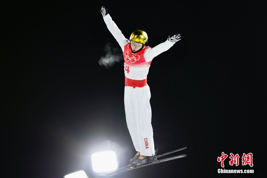 2月16日,中國選手齊廣璞在比賽中。當日,北京2022年冬奧會自由式滑雪男子空中技巧決賽在張家口賽區(qū)舉行,中國選手齊廣璞奪得冠軍。 中新社記者 富田 攝