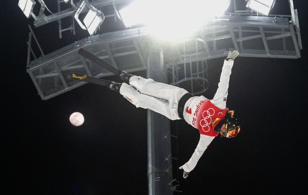 2月14日,北京冬奧會(huì)自由式滑雪女子空中技巧決賽,中國(guó)隊(duì)選手徐夢(mèng)桃在比賽中。新華社記者肖藝九攝