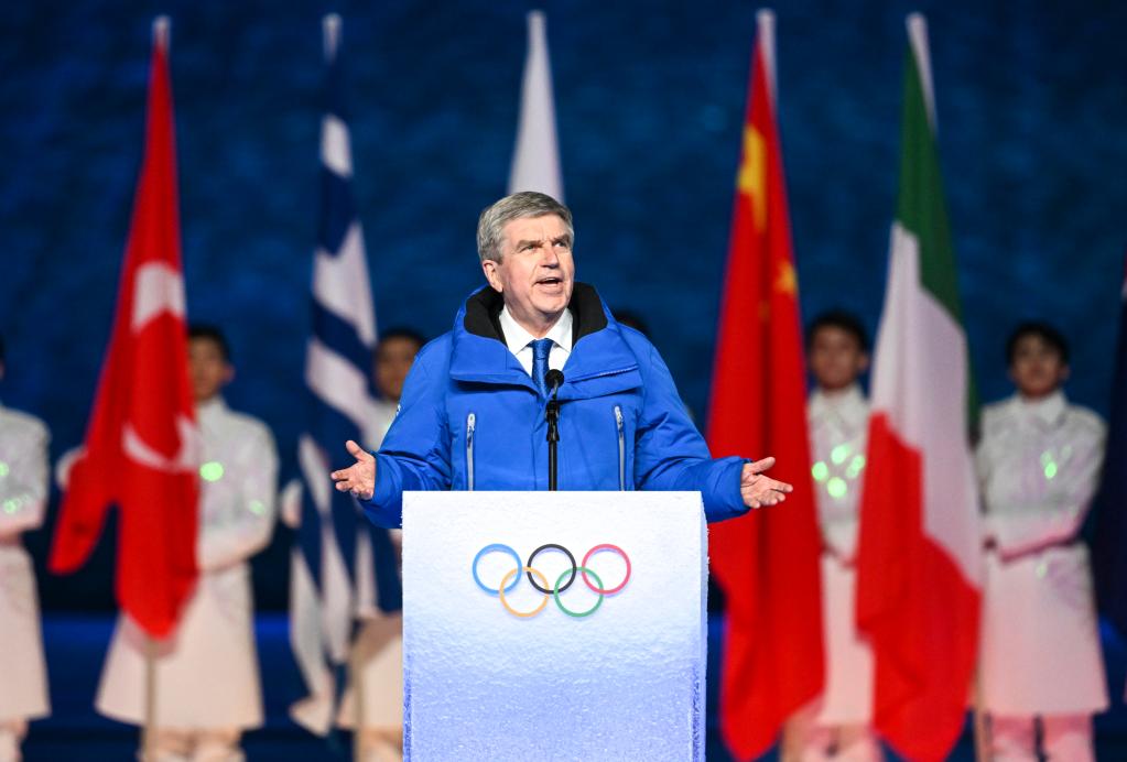 2月20日晚,北京第二十四屆冬季奧林匹克運(yùn)動(dòng)會(huì)閉幕式在國(guó)家體育場(chǎng)舉行。這是國(guó)際奧委會(huì)主席巴赫致辭。新華社記者李尕?cái)z