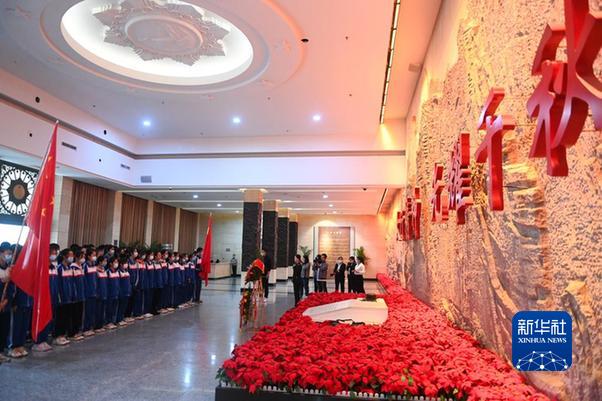 2020年9月25日,在位于山西省大同市靈丘縣的平型關(guān)大捷紀念館,工作人員向革命先烈獻花。新華社記者 楊晨光 攝