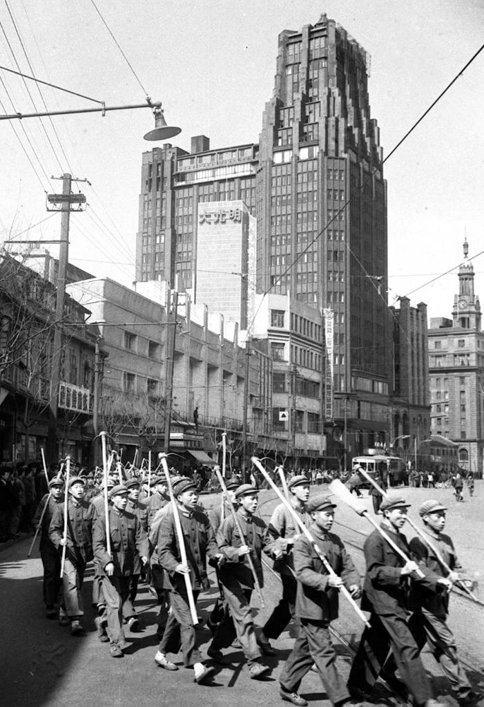 這是“南京路上好八連”的戰(zhàn)士們參加勞動(dòng)歸來(lái)(資料照片)。新華社發(fā)