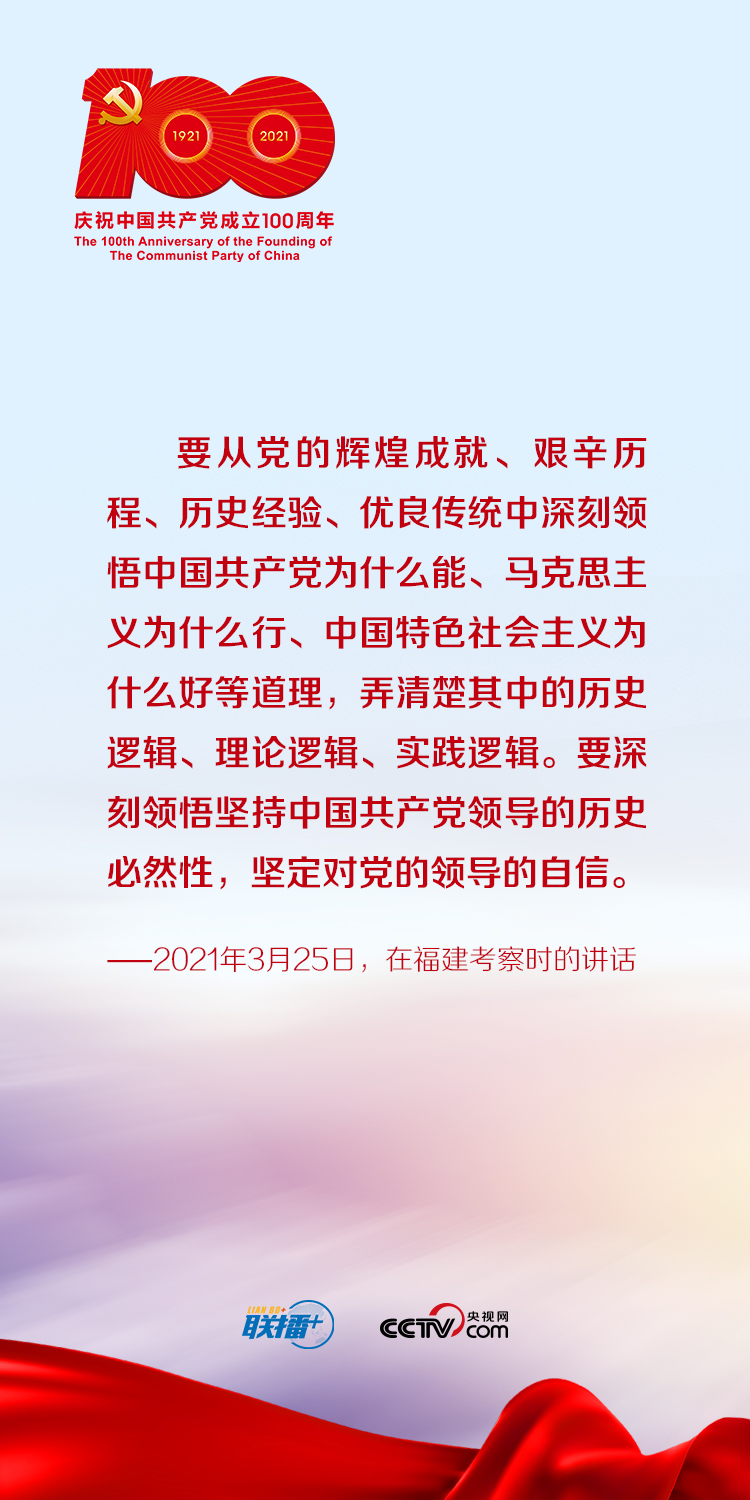 今年是中國共產(chǎn)黨成立100周年。央視網(wǎng)《聯(lián)播+》特梳理總書記關(guān)于知史愛黨的重要論述,與您一起堅(jiān)定理想信念,不斷增強(qiáng)守初心、擔(dān)使命的思想自覺和行動自覺。