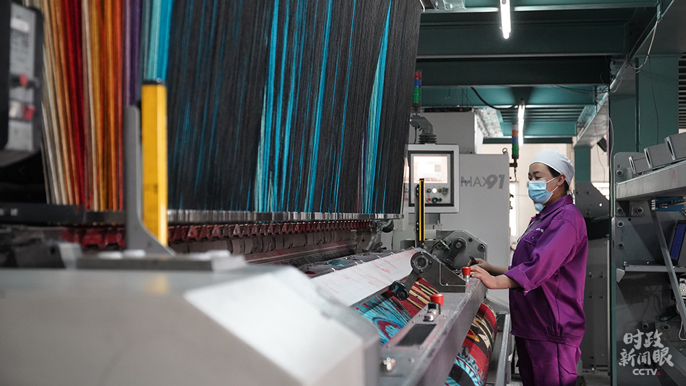 阿克明斯特織機(jī)運(yùn)行中(總臺(tái)央廣記者潘毅拍攝)