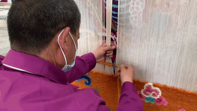 “西寧大白毛”纖維長、彈性好、有光澤,織出的地毯質(zhì)地柔軟、堅(jiān)韌耐磨。 (總臺(tái)央視記者范凱拍攝)