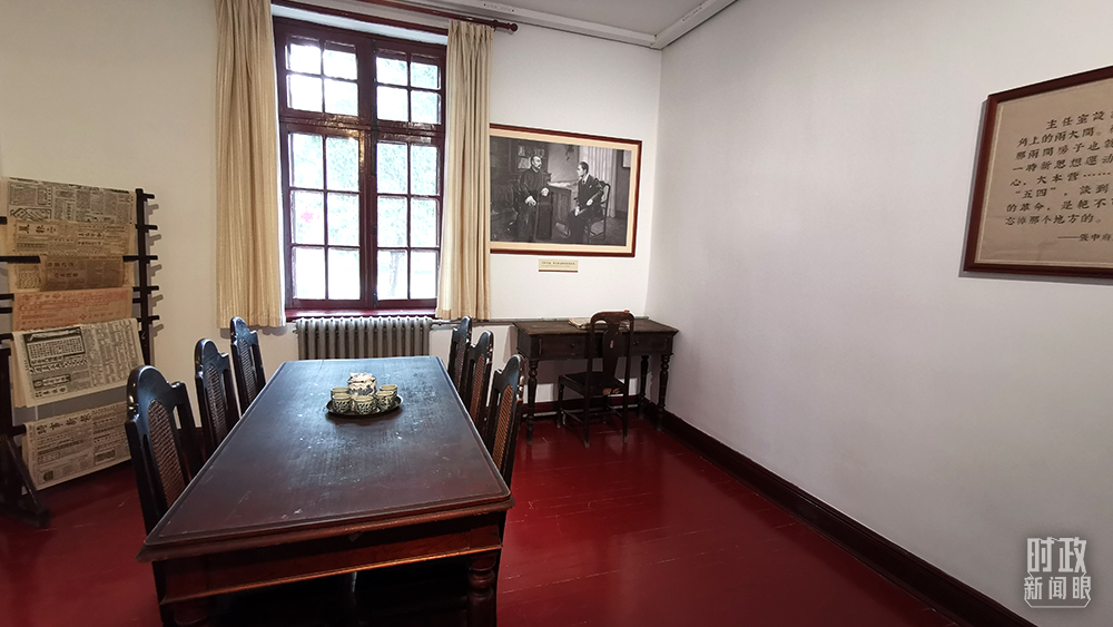 李大釗常在辦公室與進(jìn)步青年共同討論、研究各種新思潮。1920年還在此會(huì)見(jiàn)共產(chǎn)國(guó)際代表維經(jīng)斯基,研究醞釀成立共產(chǎn)黨。(總臺(tái)央視記者李曉周拍攝)