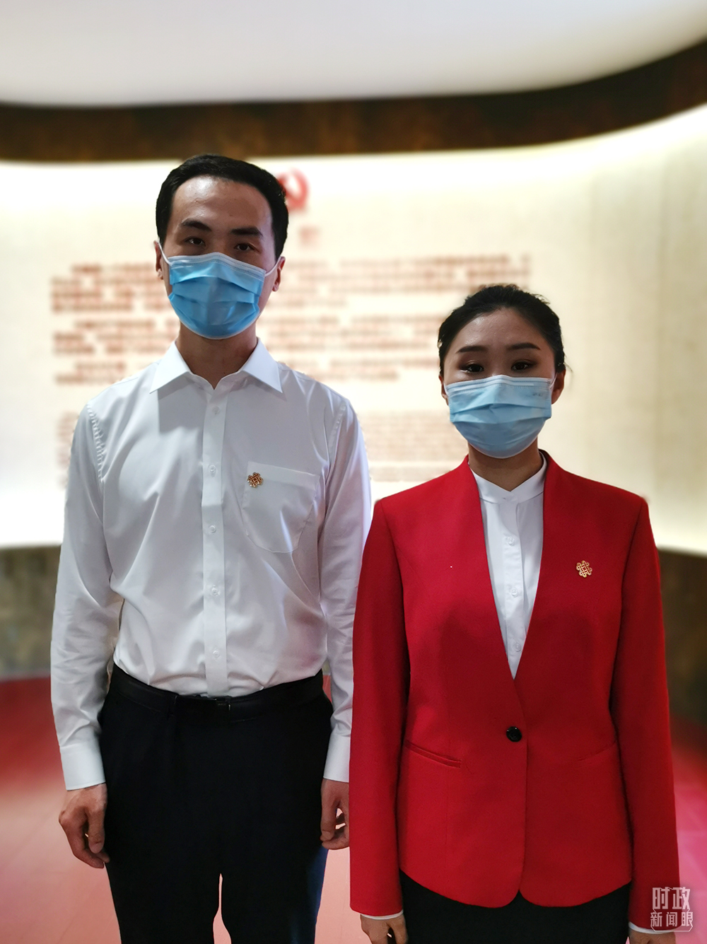 “光輝偉業(yè) 紅色序章——北大紅樓與中國(guó)共產(chǎn)黨早期北京革命活動(dòng)主題展”講解員朱寧、謝尹楠。(總臺(tái)央視記者李曉周拍攝)