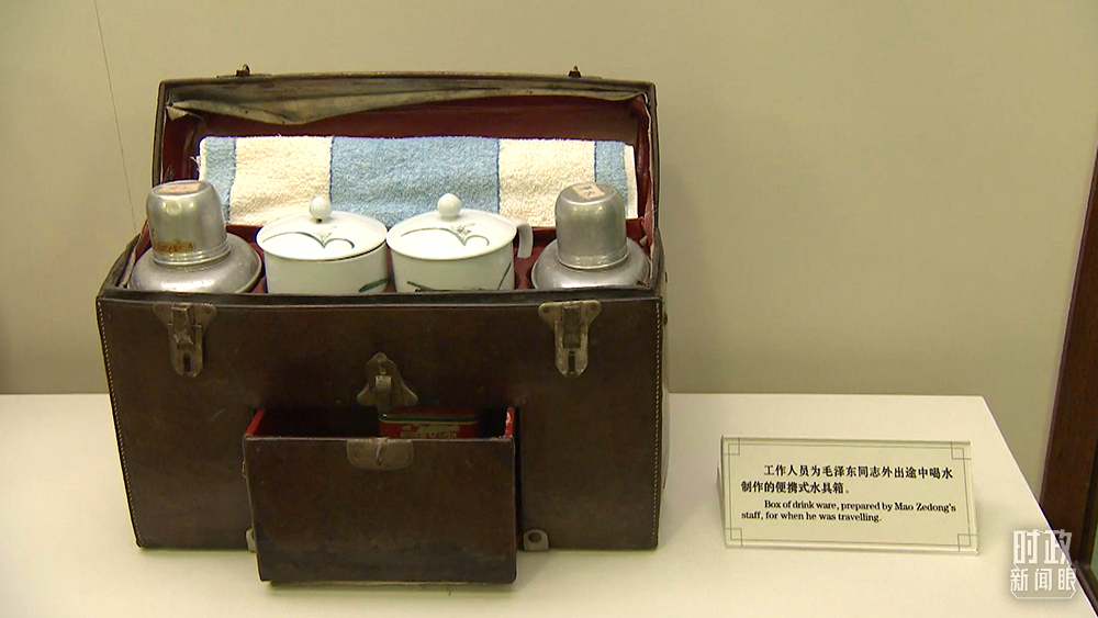 這是工作人員為毛澤東外出途中喝水制作的便攜式水具箱,現(xiàn)陳列在豐澤園毛澤東同志故居。(總臺(tái)央視記者石偉明拍攝)