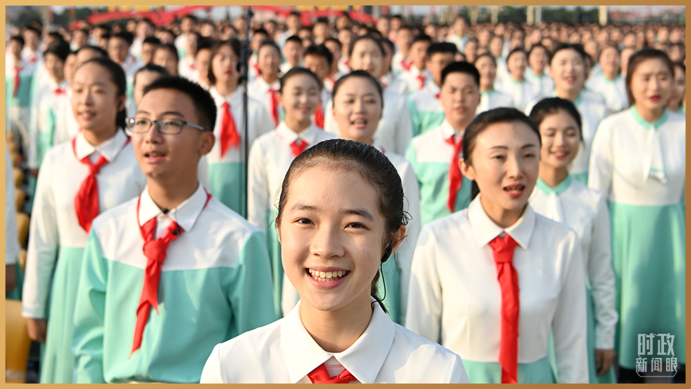 慶祝大會現(xiàn)場的共青團(tuán)員和少先隊(duì)員代表(總臺記者孫楠拍攝)