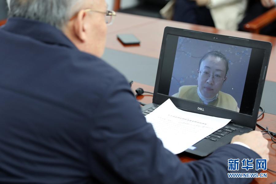 3月7日,全國(guó)人大代表、山東省泰安市農(nóng)科院食用菌研究所所長(zhǎng)孔怡(屏幕畫(huà)面中)同農(nóng)業(yè)農(nóng)村部種業(yè)管理司副司長(zhǎng)孫好勤在北京進(jìn)行網(wǎng)絡(luò)視頻連線(xiàn)。這是一次不尋常的兩會(huì)“速遞”:3月5日代表提出建議,3月6日建議經(jīng)國(guó)務(wù)院辦公廳轉(zhuǎn)到農(nóng)業(yè)農(nóng)村部,3月7日中午就實(shí)現(xiàn)了部門(mén)與代表的“云對(duì)話(huà)”。新華社記者 李木子 攝