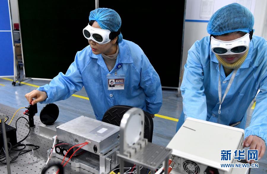 2月25日,在中國航空工業(yè)集團公司洛陽電光設(shè)備研究所,航空工業(yè)集團光電專業(yè)特級技術(shù)專家羊毅(左)與團隊成員在實驗室做實驗。新華社記者 李安 攝