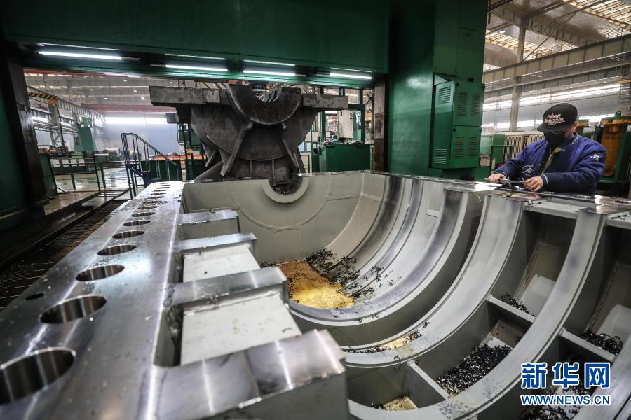 沈陽鼓風(fēng)機集團股份有限公司的工人在車間進行生產(chǎn)工作(2020年2月10日攝)。新華社記者 潘昱龍 攝