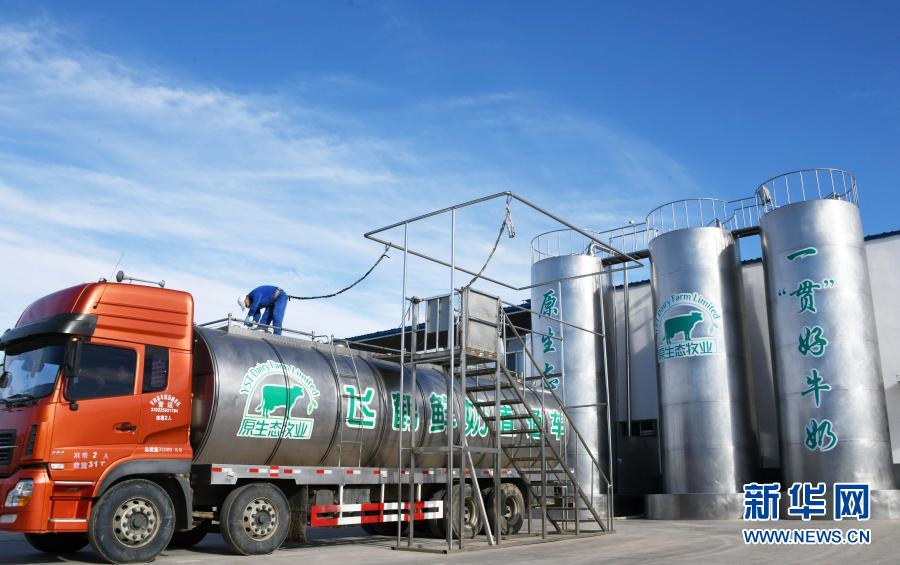 在黑龍江飛鶴乳業(yè)股份有限公司專屬的甘南縣瑞信達原生態(tài)牧場,工作人員在檢查一輛剛裝完鮮奶的全封閉低溫安全運輸車(2018年10月30日攝)。新華社記者王建威攝