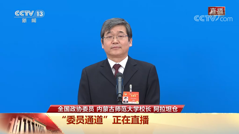 今天下午,在全國(guó)政協(xié)十三屆四次會(huì)議第三場(chǎng)“委員通道”上,全國(guó)政協(xié)委員、內(nèi)蒙古師范大學(xué)黨委副書(shū)記、校長(zhǎng)阿拉坦倉(cāng)表示,如今的內(nèi)蒙古,已從過(guò)去只有天蒼蒼、野茫茫、風(fēng)吹草低見(jiàn)牛羊,發(fā)展到現(xiàn)在有繁華的城市、快速發(fā)展的經(jīng)濟(jì)和飛馳的高鐵。在發(fā)展過(guò)程中,民族團(tuán)結(jié)的理念深深地種在每一個(gè)內(nèi)蒙古人的心里。