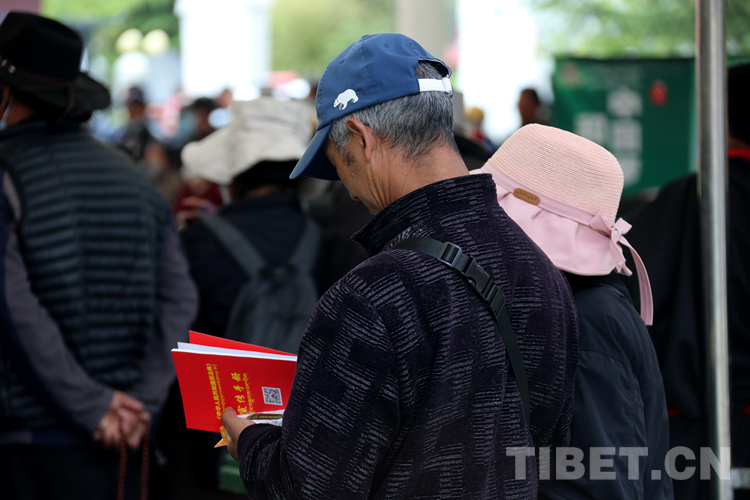 圖為一名群眾正在仔細(xì)閱讀剛剛領(lǐng)取的宣傳手冊 攝影:王佳豪