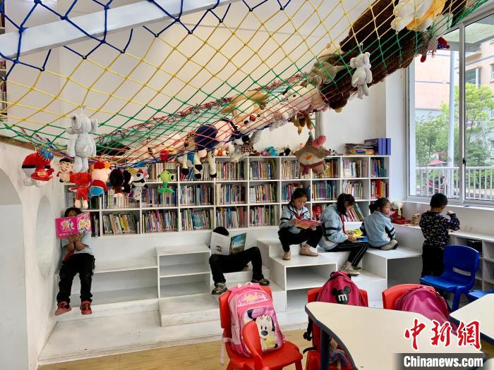圖為當?shù)貎和谌龑殐和瘓D書館開館當日看書學習?!埗z