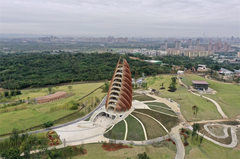 鳥瞰成都熊貓基地的瞭望塔——“春筍塔” (成都大熊貓繁育研究基地供圖)