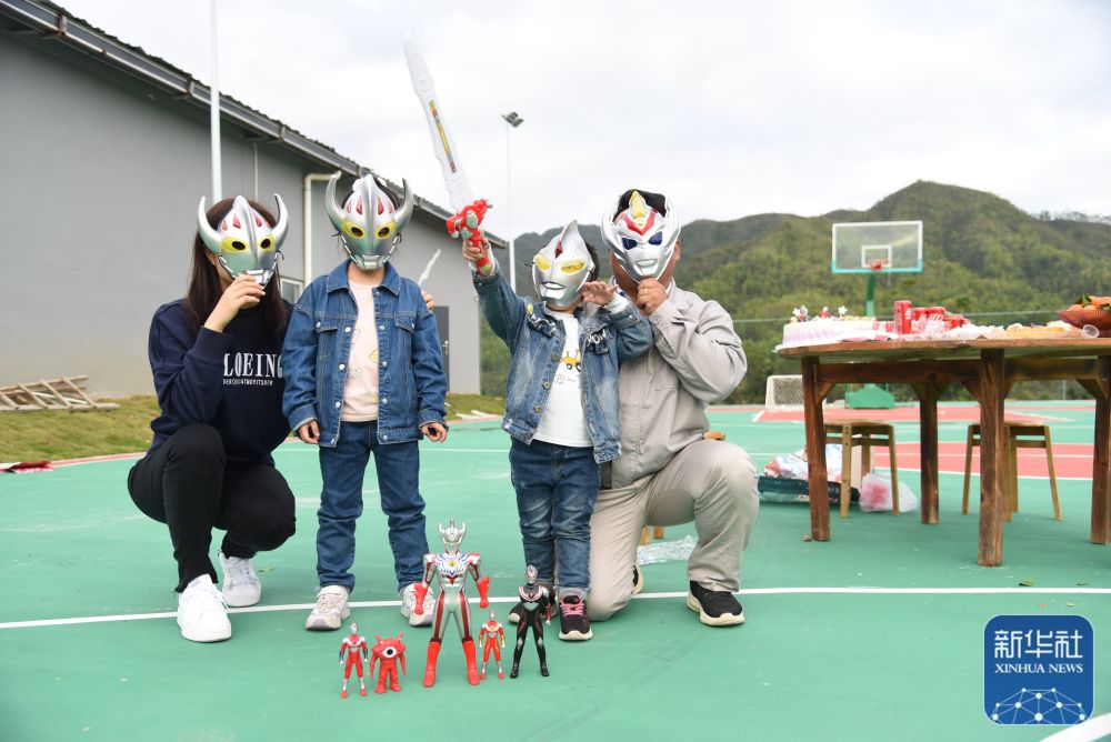小女兒(右二)生日當(dāng)天,楊興義為她買了最愛的玩具(1月25日攝)。新華社記者田建川攝