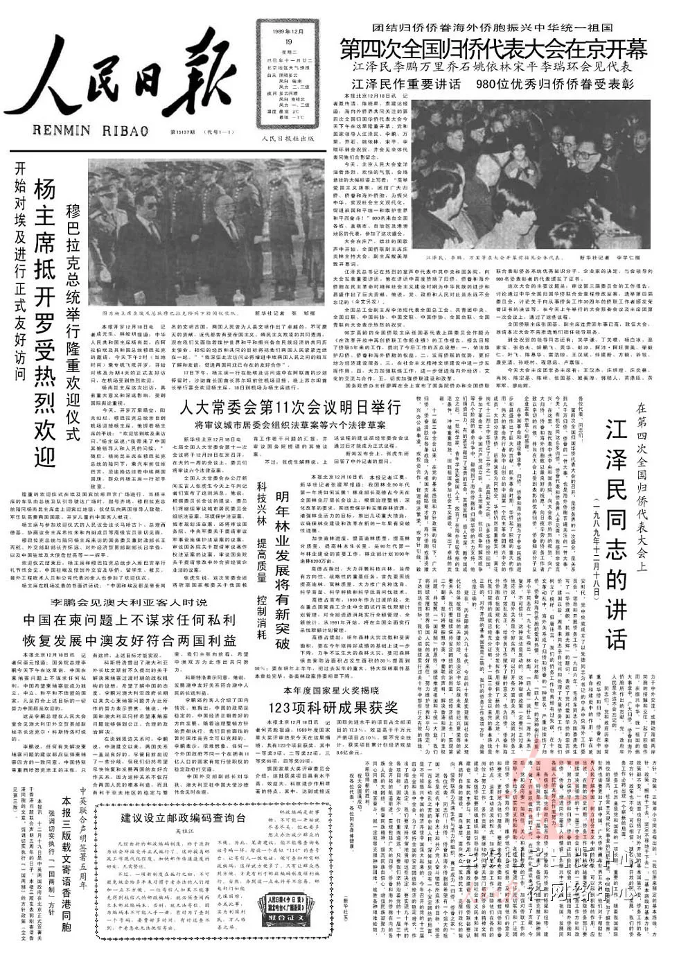 1992年,鄧小平視察南方并發(fā)表重要談話和黨的十四大的召開,標(biāo)志著我國改革開放和社會(huì)主義現(xiàn)代化建設(shè)進(jìn)入了新的發(fā)展階段。愛國統(tǒng)一戰(zhàn)線以鄧小平建設(shè)有中國特色社會(huì)主義的理論為指導(dǎo),圍繞建立社會(huì)主義市場(chǎng)經(jīng)濟(jì)體制,”一國兩制”方針的貫徹實(shí)施,不斷研究新情況和新問題,充分調(diào)動(dòng)各族各界人士的積極性、主動(dòng)性和創(chuàng)造性,形成了新的氣勢(shì),開創(chuàng)了新的局面。開創(chuàng)我國僑務(wù)工作新局面中國是僑務(wù)資源大國,5000多萬海外僑胞廣泛分布在世界各地,3000多萬歸僑僑眷工作、生活在全國各地。新時(shí)期以來,廣大海外僑胞和歸僑僑眷,成為實(shí)現(xiàn)祖國統(tǒng)一和民族振興的重要力量。在僑務(wù)工作中,黨和政府始終堅(jiān)持“三有利”原則,即有利于海外僑胞的長(zhǎng)期生存和發(fā)展,有利于發(fā)展中國同海外僑胞住在國的友好合作關(guān)系,有利于推進(jìn)我國現(xiàn)代化建設(shè)、維護(hù)和促進(jìn)祖國統(tǒng)一。1989年12月,第四次全國歸國華僑代表大會(huì)在北京舉行,江澤民代表中共中央和國務(wù)院發(fā)表重要講話。全國僑聯(lián)主席張國基代表上屆委員會(huì)作題為《在改革開放中再創(chuàng)僑聯(lián)工作新業(yè)績(jī)》的工作報(bào)告。國務(wù)院僑辦主任廖暉宣布了國務(wù)院僑辦和全國僑聯(lián)聯(lián)合表彰980名僑務(wù)系統(tǒng)優(yōu)秀知識(shí)分子、企業(yè)家的決定。
