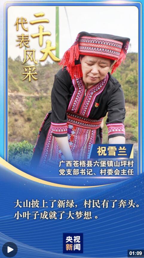 “二十大代表風(fēng)采”一起來(lái)認(rèn)識(shí)廣西蒼梧縣山坪村黨支部書(shū)記、村委會(huì)主任祝雪蘭。