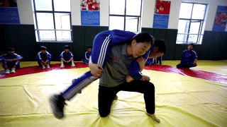 她在自治區(qū)體校開始接觸摔跤