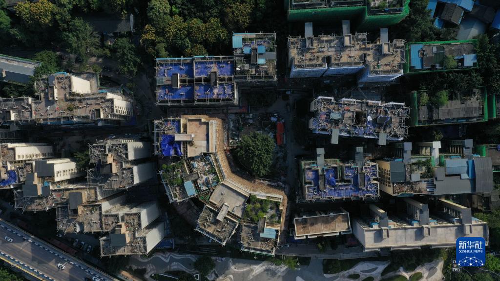 這是重慶市北碚區(qū)新房子片區(qū)老舊小區(qū)改造項目施工現(xiàn)場(2021年10月23日攝,無人機(jī)照片)。新華社發(fā)(秦廷富攝)