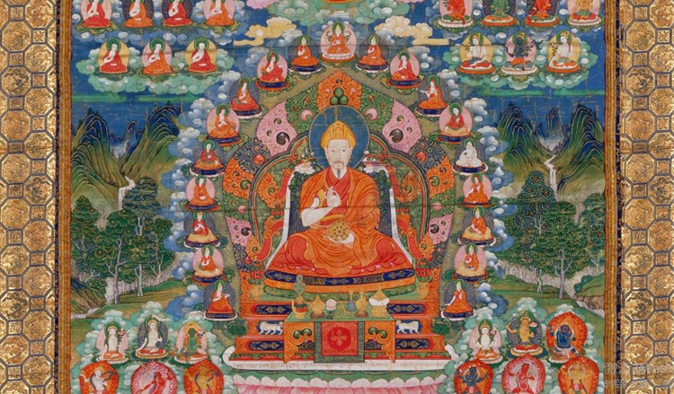 圖為18世紀(jì)《班禪喇嘛源流——薩迦班智達(dá)唐卡》。圖片來(lái)源:故宮博物院官網(wǎng)