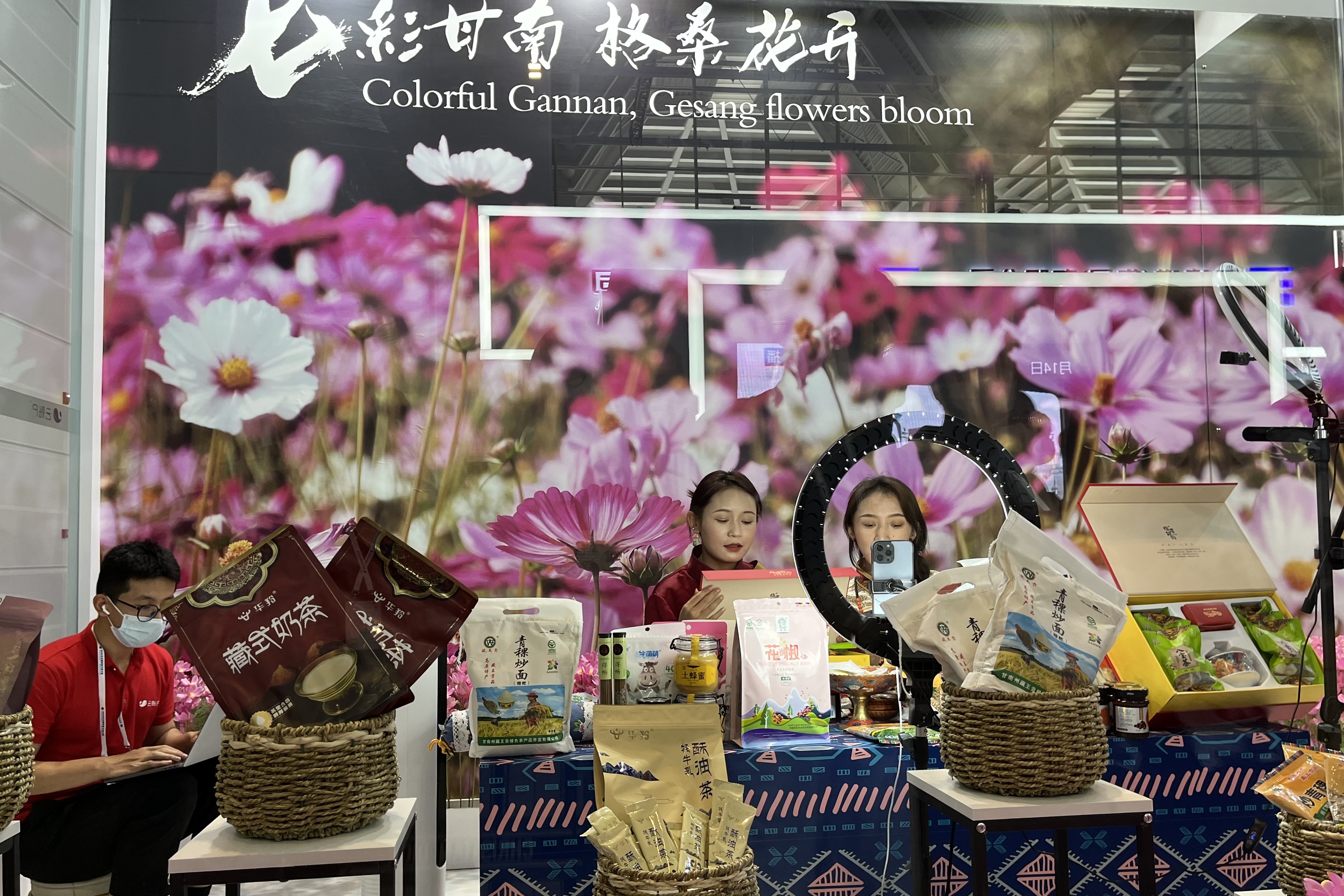 來自甘肅省甘南州的短視頻藝人正在直播。