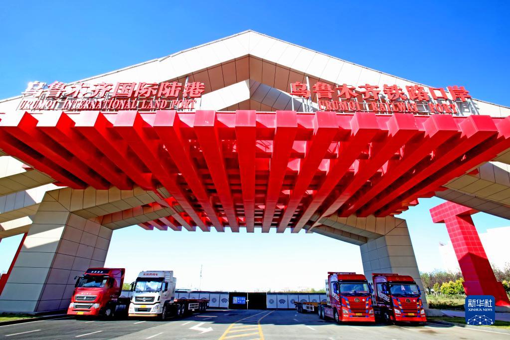 在烏魯木齊市西北部,國(guó)際陸港區(qū)建設(shè)如火如荼。這是絲綢之路經(jīng)濟(jì)帶核心區(qū)建設(shè)的標(biāo)志性工程之一。