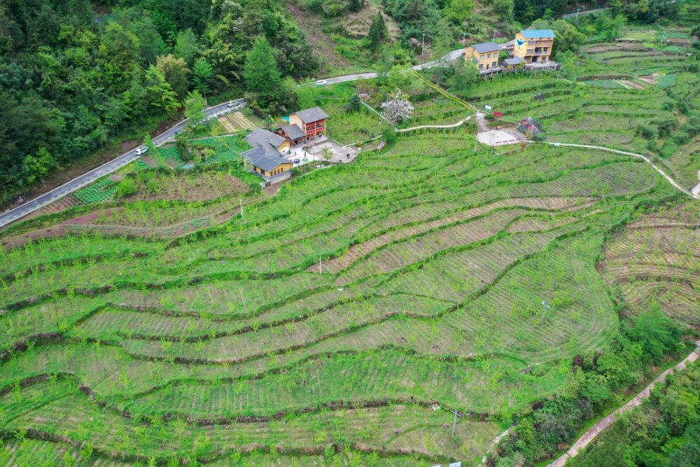 這是重慶石柱土家族自治縣中益鄉(xiāng)華溪村黃精種植基地(2022年4月14日攝,無(wú)人機(jī)照片)。新華社記者 唐奕 攝