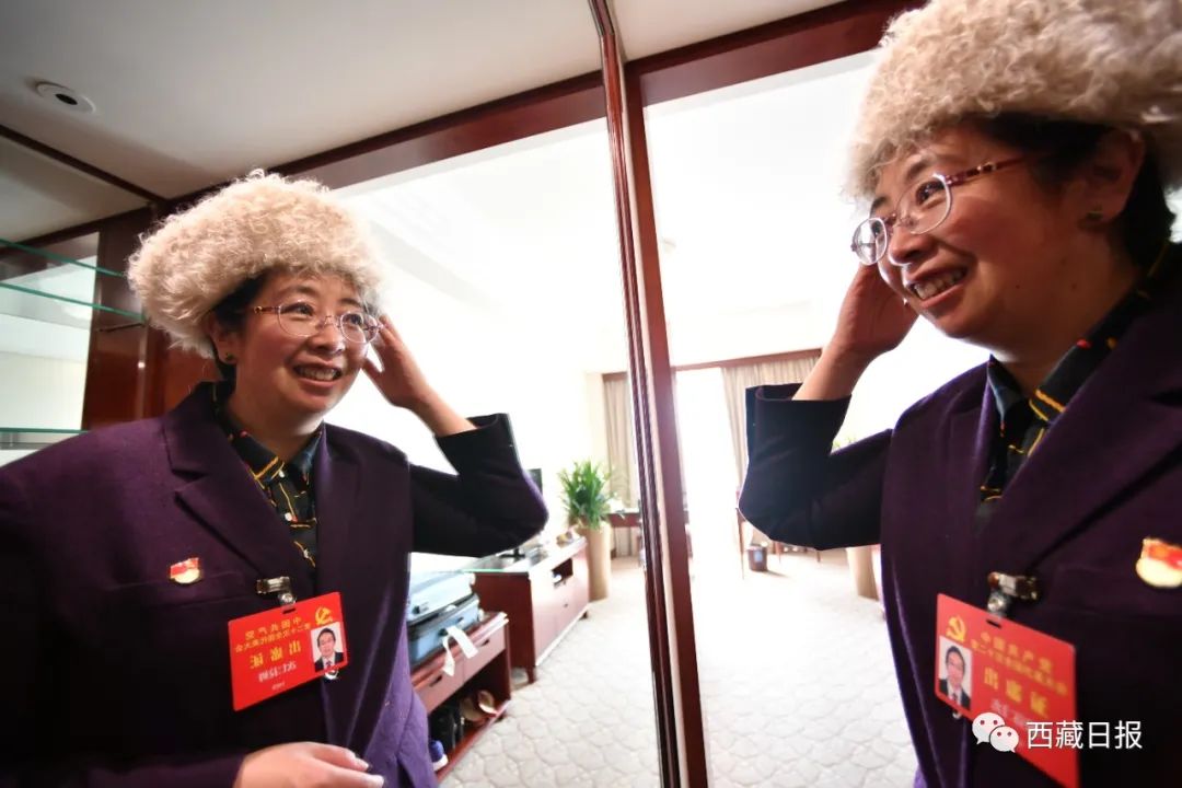 作為那曲市特殊教育學(xué)校校長,次仁拉姆代表此次赴京參會(huì)專門戴上了學(xué)生親手制作的帽子,將以飽滿的熱情開好這次大會(huì)。記者 旦增西旦 攝
