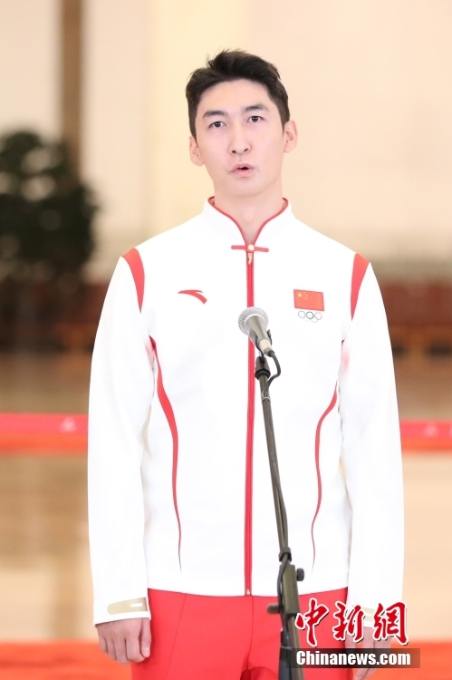 10月16日,中國共產黨第二十次全國代表大會在北京人民大會堂開幕。大會開幕前,舉行“黨代表通道”采訪活動。圖為武大靖代表接受采訪。 中新社記者 蔣啟明 攝