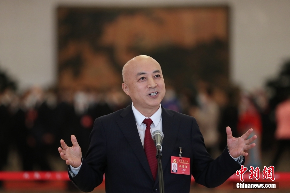 10月16日,中國共產黨第二十次全國代表大會在北京人民大會堂開幕。大會開幕前,舉行“黨代表通道”采訪活動。圖為王旭東代表接受采訪。 中新社記者 蔣啟明 攝