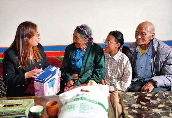 入戶走訪的過程中,王玉秀收獲了許多藏族老百姓的信任和喜愛。援藏結束前,她專門去看望在日喀則市謝通門縣初村結識的次仁和格桑桑珠,還為他們留下生活用品和現(xiàn)金。臨別時,次仁感動地說:“能有這么一位‘親戚’,我們真的很高興。”