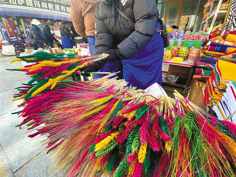 扎西加措回憶,上世紀80年代可沒這么豐富的年貨。飯桌上就是“老三樣”:蘿卜、土豆和“熟芽菜”,再加上風干肉和幾個蘋果,就算是過年了?!艾F(xiàn)在生活太好了,想買什么年貨,只要去八廓商城和沖賽康商場都可以買到,藏歷新年喜樂祥和的氛圍越來越濃了?!闭f起現(xiàn)在的藏歷新年,老人臉上堆滿了笑意。