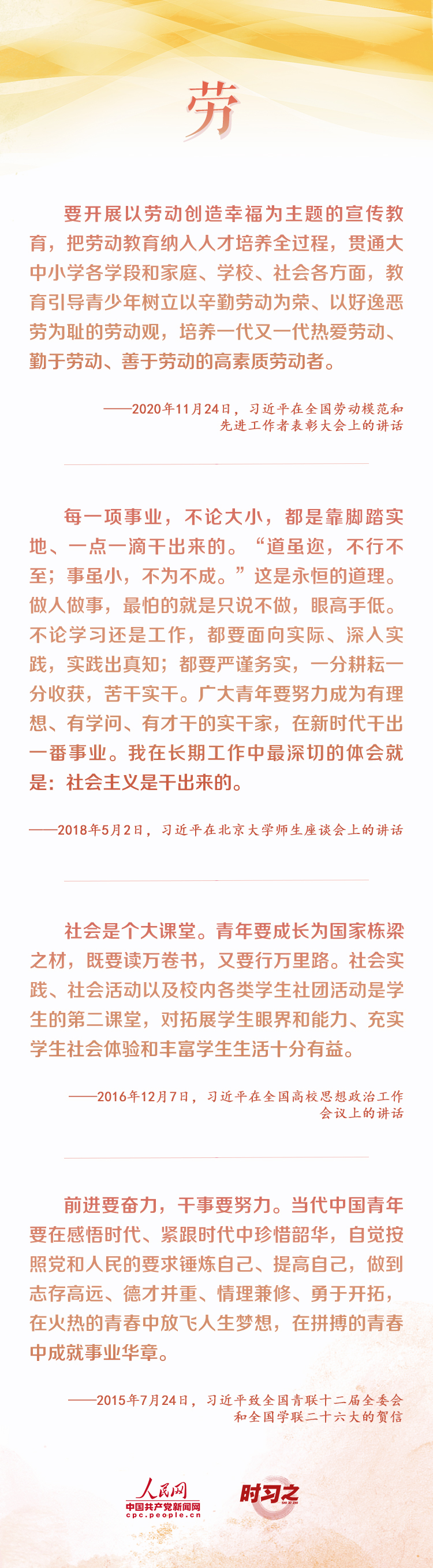 當(dāng)代中國青年生逢盛世、肩負重任,與新時代同向同行、共同前進。在青春的賽道上奮力奔跑,爭取跑出當(dāng)代青年的最好成績,習(xí)近平激勵青年要德智體美勞全面發(fā)展。