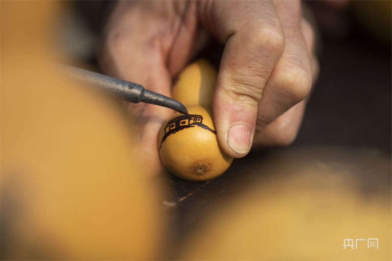養(yǎng)蜂人習(xí)小龍和妻子在當(dāng)?shù)剡€是遠近聞名的脫貧致富“葫蘆夫妻”。為什么這么說呢?因為夏季養(yǎng)蜂,為遮蔽陽光的需要,他們在蜂箱周邊種植了大量葫蘆,成熟的葫蘆大小不一,觀賞性十足。到了冬季,習(xí)小龍則會將自己種植的葫蘆收集起來,精心雕琢,將它們變成手工藝品。如今,經(jīng)過20多年的努力經(jīng)營,習(xí)小龍和妻子的日子過得甜蜜而幸福。