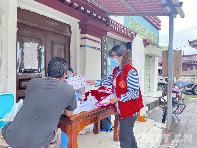 圖為羅布央宗向群眾作宣傳