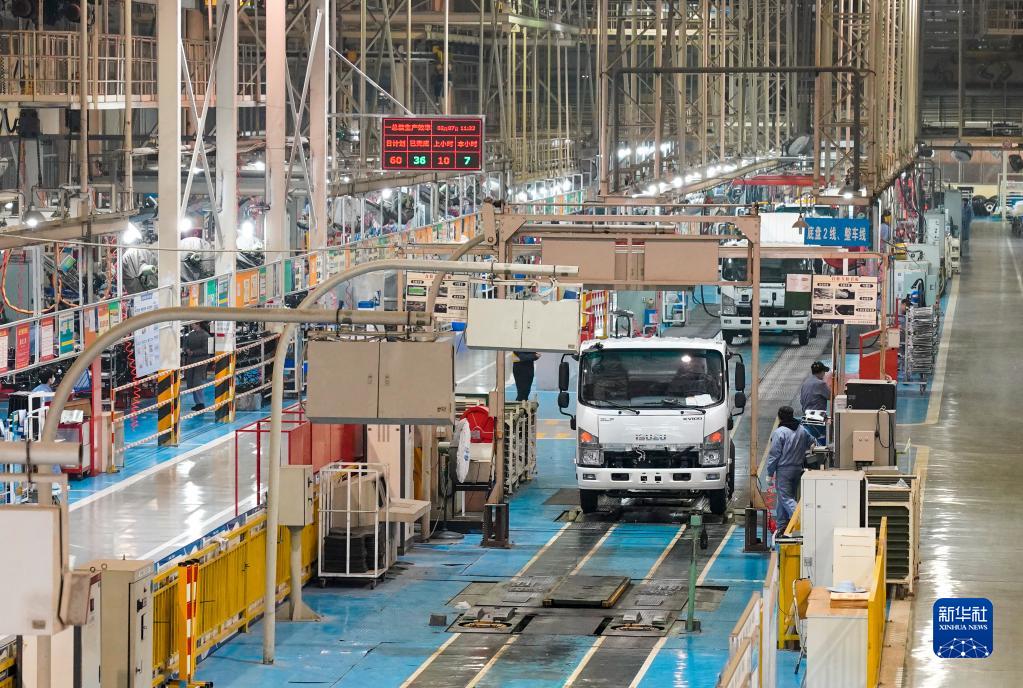 這是慶鈴汽車(集團)有限公司繁忙的商用車整車生產線(2023年2月7日攝)。新華社記者 劉潺 攝