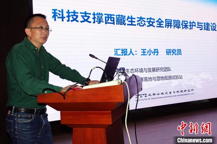 王小丹研究員介紹“科技支撐西藏生態(tài)安全屏障保護(hù)與建設(shè)”相關(guān)情況。中新網(wǎng)記者孫自法攝