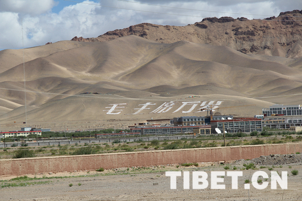 中國西藏網(wǎng)訊 進入阿里地區(qū)首府噶爾縣獅泉河鎮(zhèn)時,獅泉河城北山坡上“毛主席萬歲”五個巨字格外醒目,當?shù)厝擞H切地稱之為“萬歲山”。