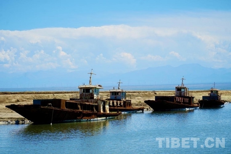 圖為茶卡鹽湖的舊船 攝影:金文陽