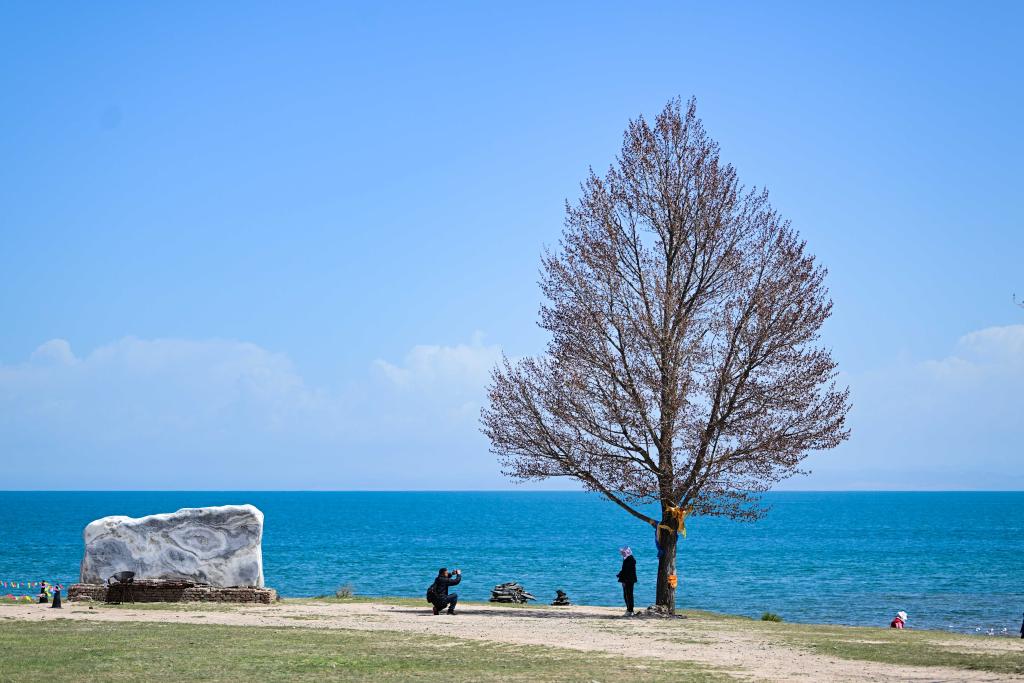 5月18日,在青海湖二郎劍景區(qū),游客在拍照。新華社記者張龍攝