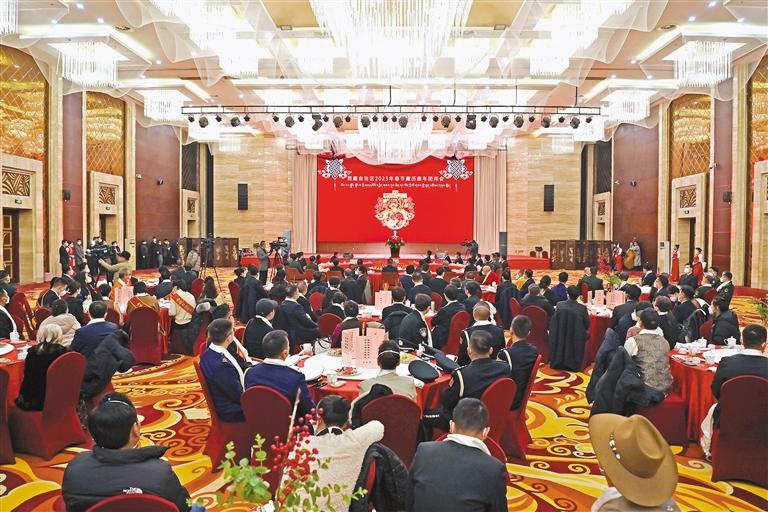 1月17日下午,西藏自治區(qū)2023年春節(jié)、藏歷新年團拜會在拉薩舉行。自治區(qū)黨委書記、西藏軍區(qū)黨委第一書記王君正致辭。