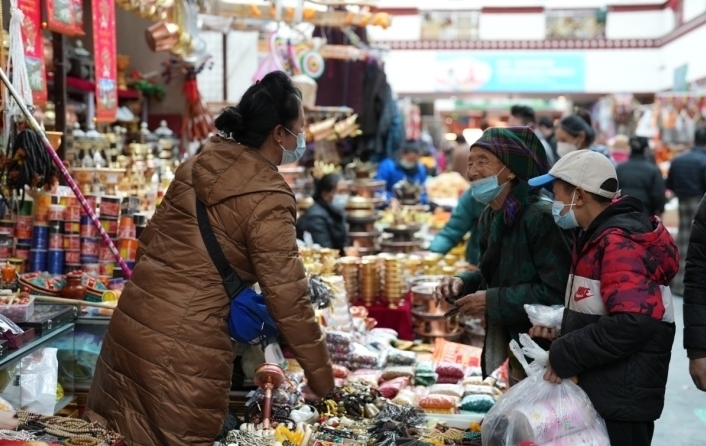 農(nóng)歷春節(jié)年味兒尚未散去,拉薩街頭張燈結(jié)彩,年貨市場各種商品琳瑯滿目,置辦年貨的人摩肩接踵。古城在歡樂祥和的氛圍中喜迎藏歷水兔新年(2月21日)。