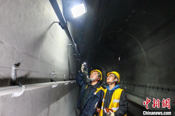 利用軌道檢查小車在隧道內(nèi)檢查線路狀態(tài)?!●R生明 攝