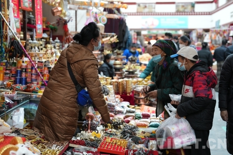 圖為拉薩八廓商城內(nèi)購(gòu)買年貨忙。趙振宇 攝