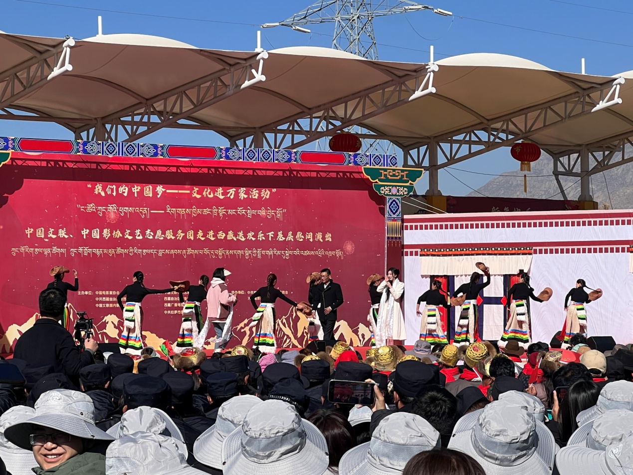 上午十一點(diǎn)開始,當(dāng)?shù)厝罕娚碇⒀b早早地來到活動(dòng)現(xiàn)場(chǎng)。隨著歡快的伴舞歌曲《吉祥歡歌》的唱響,活動(dòng)拉開了序幕。